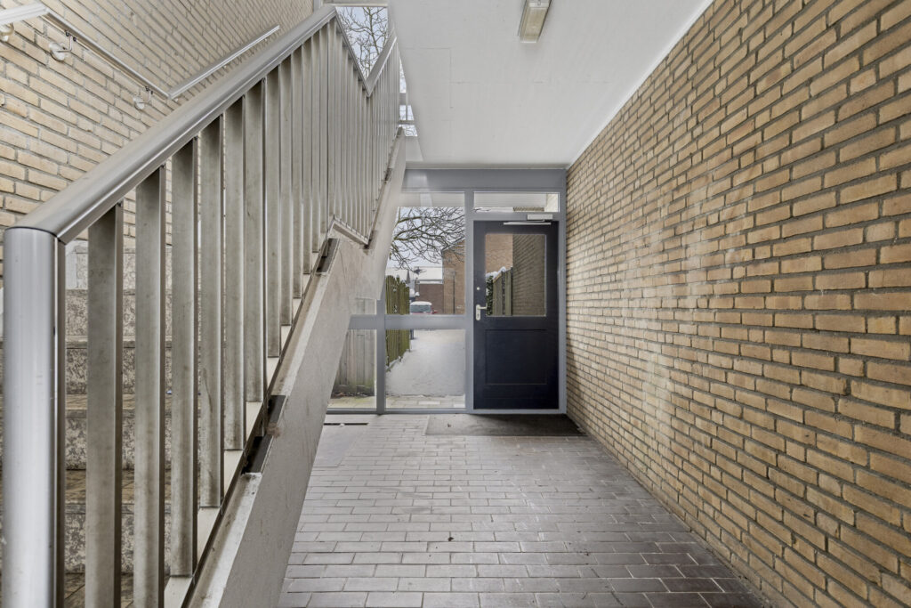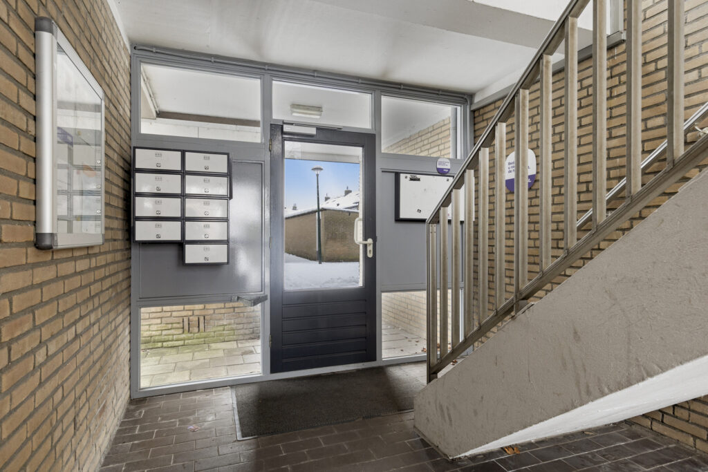 Op de begane grond betreed je het gebouw via de gezamenlijke entree met bellentableau en brievenbussen. Het trappenhuis brengt je naar de eerste verdieping. Aan de voorzijde van het complex ligt de gezamenlijke fietsenberging.