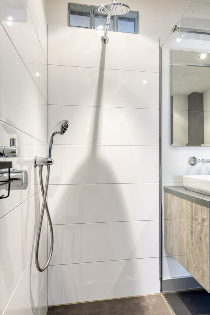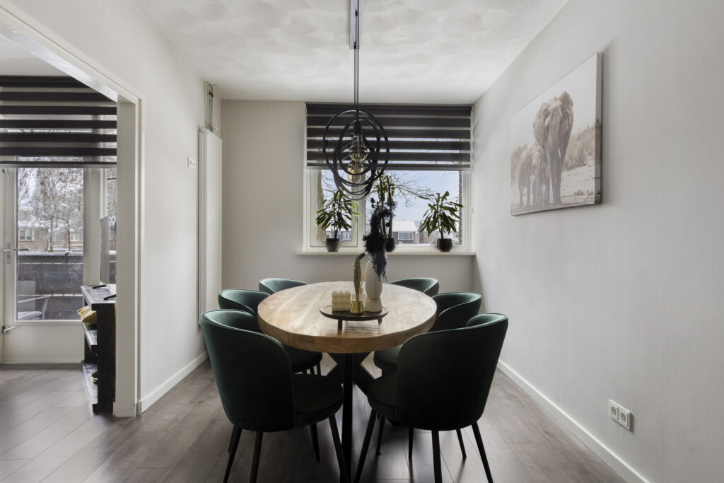 De woonkamer heeft een groot raam en een deur geeft een directe toegang tot het op het westen gelegen balkon. De grote raampartijen bieden volop lichtinval. Via een open doorgang wordt de woonkamer verbonden met de eetkamer (voormalige slaapkamer). Vanuit hier bereik je de ruime badkamer ingericht met inloopdouche, hangend toilet, wastafel met ladeblok en spiegel, inbouwspots en een handdoekradiator.