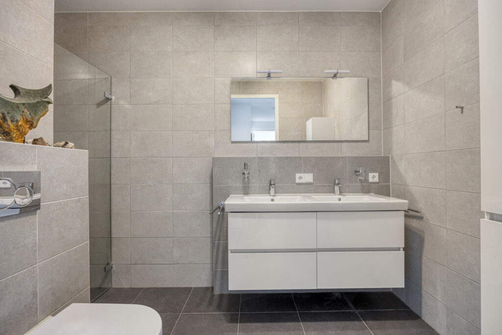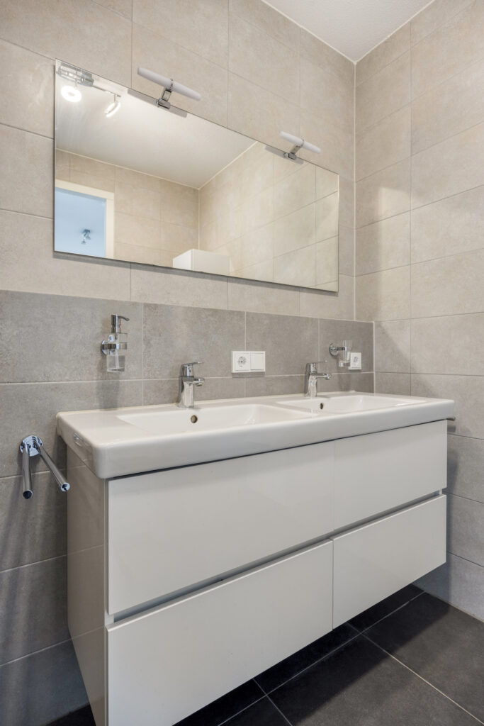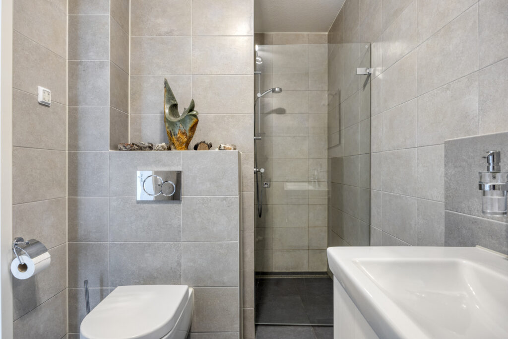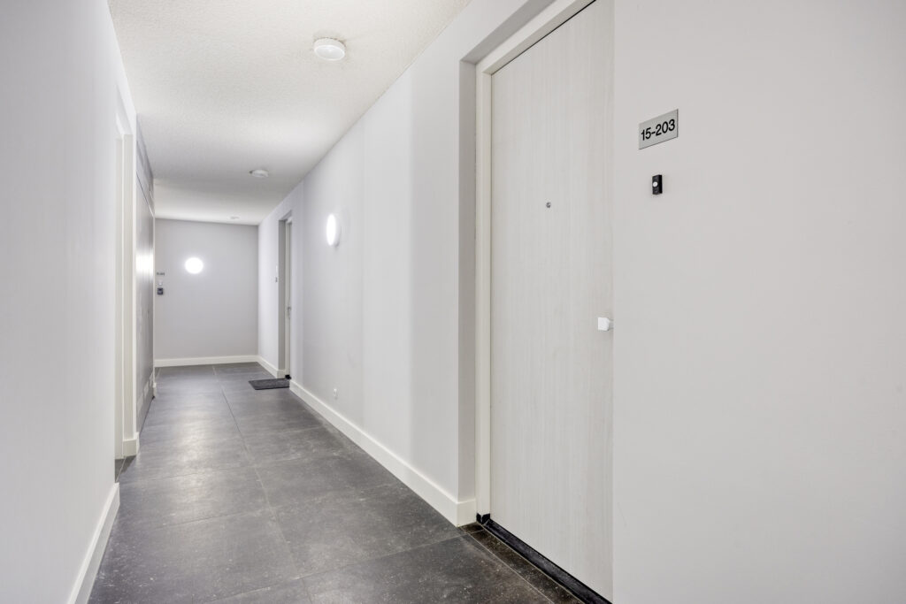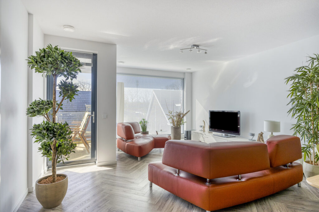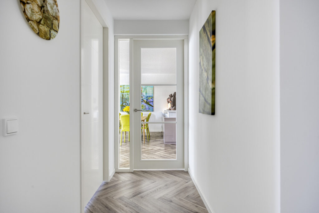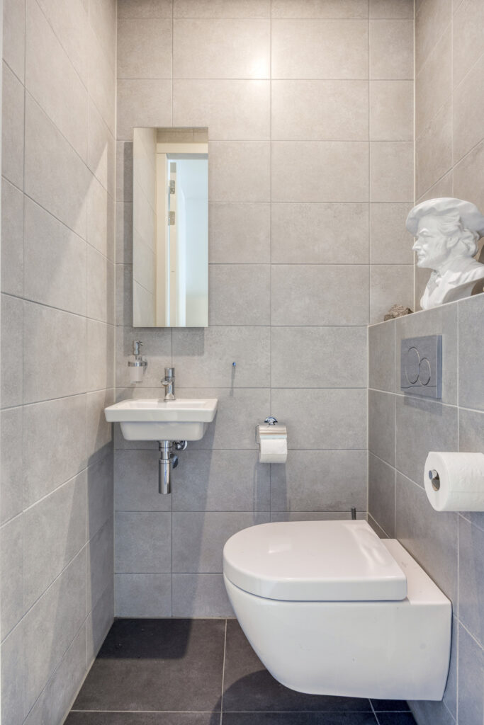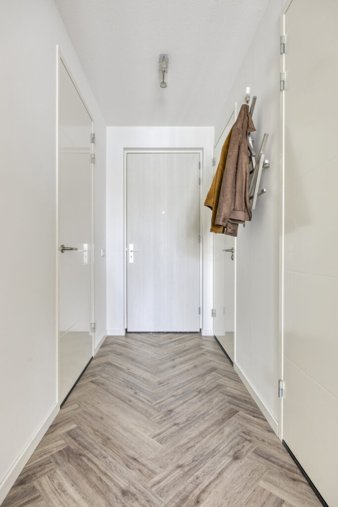 Het instapklare appartement is gelegen op de tweede verdieping. Bij binnenkomst in de hal valt direct de hoogwaardige afwerking op. De pvc-vloer met vloerverwarming en -koeling loopt door in alle woonruimtes. Vanuit de hal is er o.a. toegang tot een moderne toiletruimte, voorzien van een wandcloset en fonteintje. Een ruime technische ruimte biedt plaats aan de warmtepomp (lucht), WTW-installatie, wasapparatuur en de omvormer voor de zonnepanelen. Daarnaast is hier de schakelkast voor de elektra en de verdeler voor de vloerverwarming geplaatst.