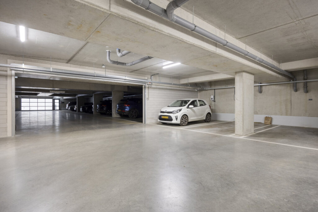 In de stallingsgarage, welke met lift of trap bereikbaar is, is er een privé parkeerplaats. Ook bevindt zich hier een privé berging. Er zijn, naast alle privé plekken ook 9 plekken beschikbaar voor bezoekers van het complex. In geval van bezoek is zowel de entreedeur van het gebouw als de toegangsdeur van de garage vanuit de woonkamer te openen met de videofooninstallatie.