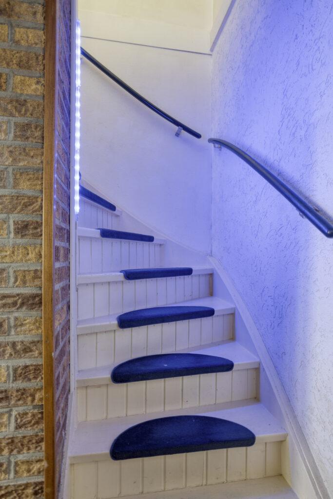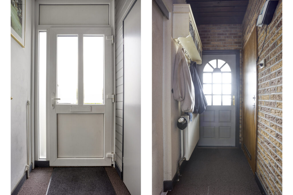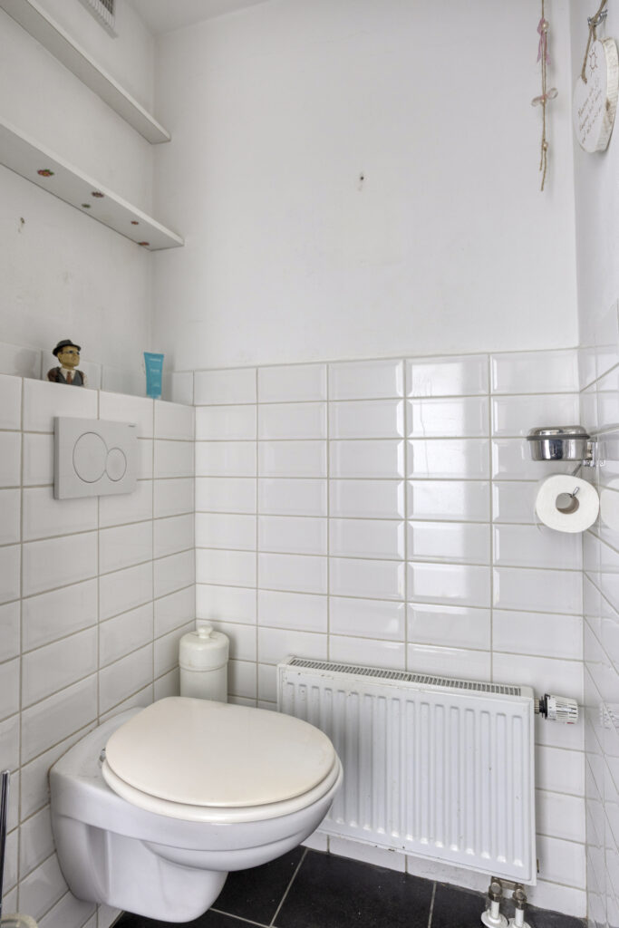 Via de kunststof voordeur betreedt u de hal met trapopgang, trapkast en toiletruimte met wandcloset en afzuiging. Vanuit hier geeft een schuifdeur toegang tot de woonkamer.