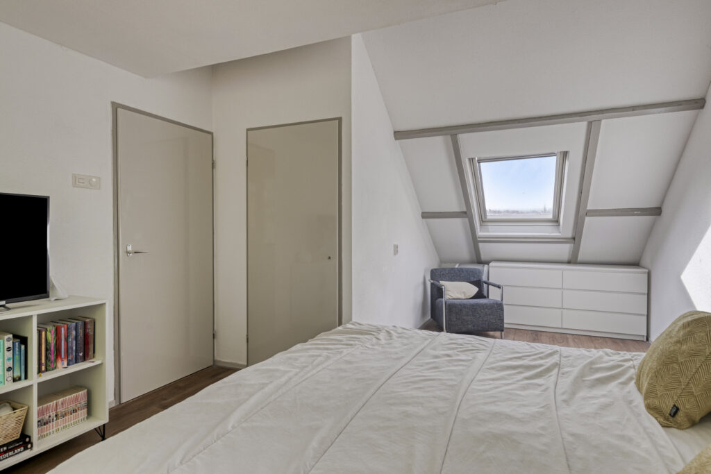 De zolderverdieping biedt volop mogelijkheden. Op de voorzolder vind je de cv-combiketel (Nefit, 2019), aansluitingen voor wasapparatuur en een dakraam. Aansluitend is er een royale zolderkamer, momenteel in gebruik als slaapkamer, met laminaatvloer en een dakkapel met kunststof kozijnen (2023) voorzien van draai-kiepramen, dubbel glas en elektrisch bedienbaar rolluik. De kamer heeft een vaste kast en een tweede dakraam aan de achterzijde.