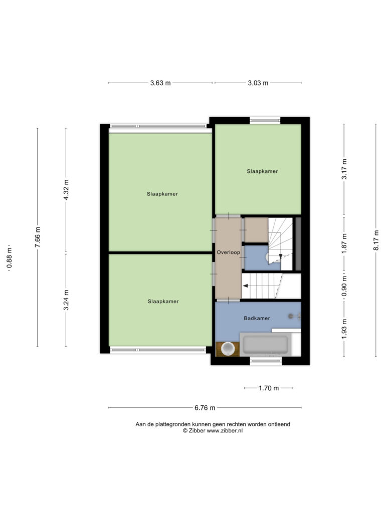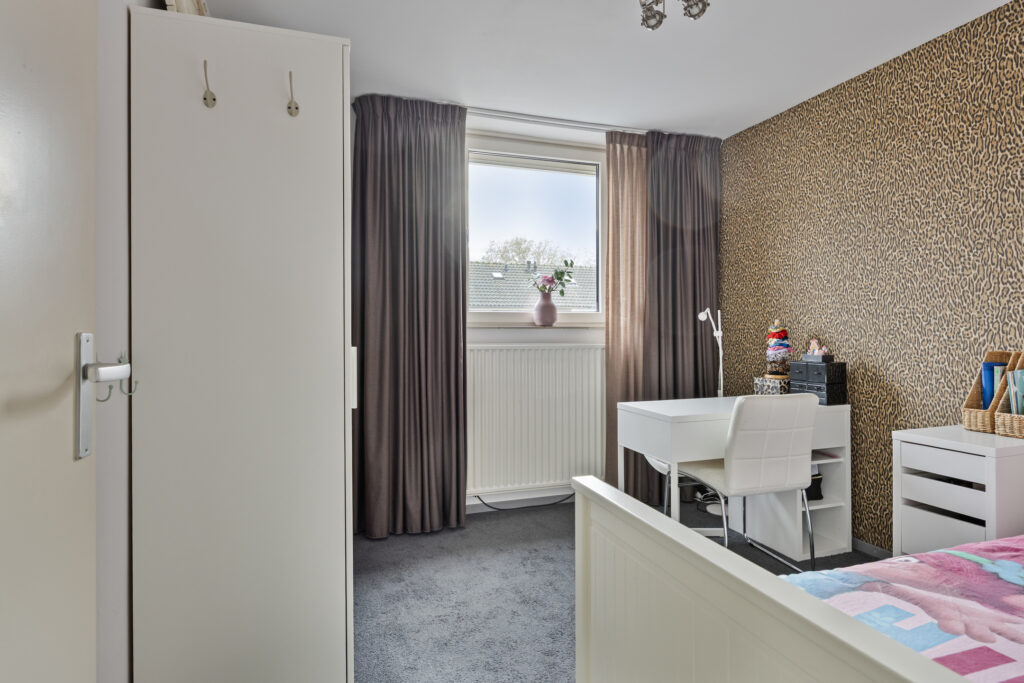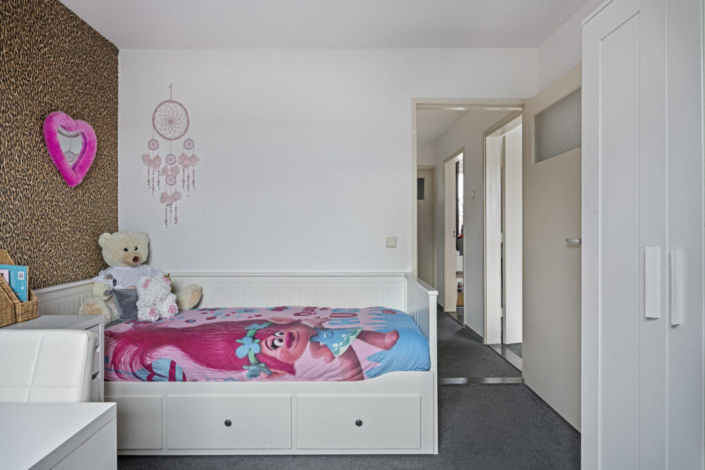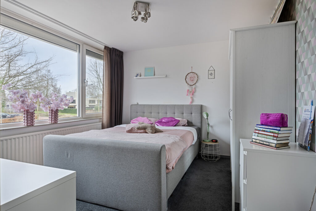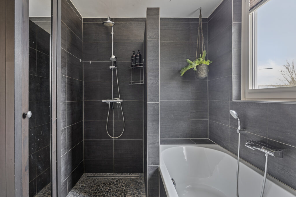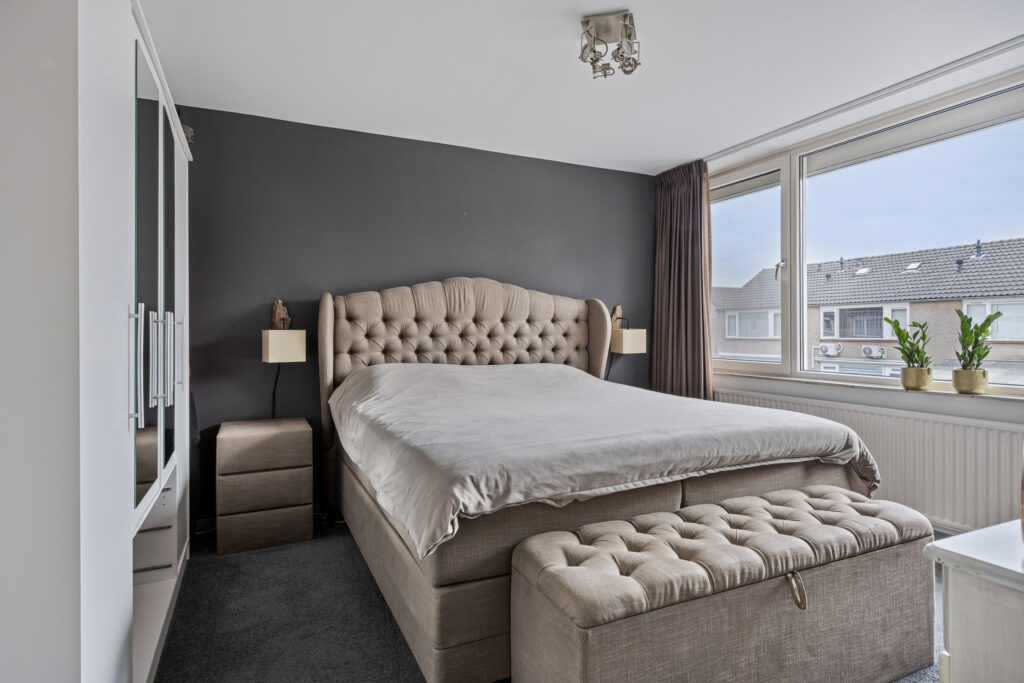 Via de trapopgang bereikt u de overloop met toegang tot de drie slaapkamers, badkamer en de moderne separate toiletruimte. Eén slaapkamer is gesitueerd aan de voorzijde en twee slaapkamer aan de achterzijde van de woning. De slaapkamers zijn allemaal voorzien van (deels elektrische) rolluiken. De badkamer is gelegen aan de voorzijde van de woning en is voorzien van een ligbad, inloopdouche, wastafelmeubel met waskom en spiegelkast. De badkamer is tevens voorzien van vloerverwarming.