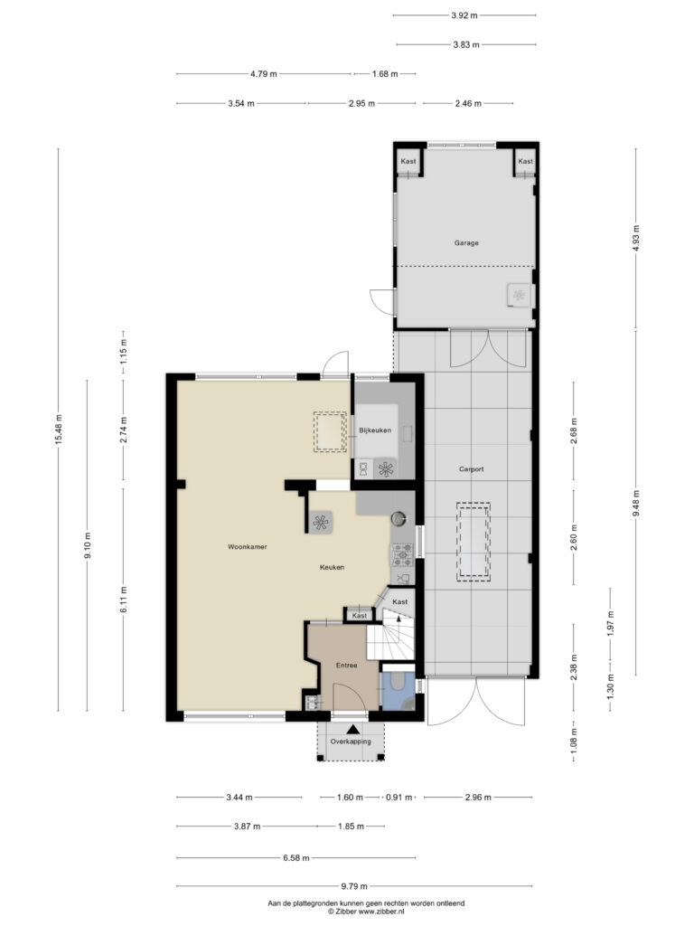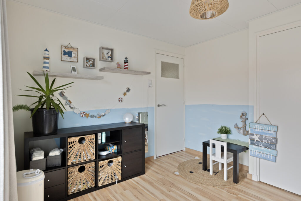 De separate kastenkamer aan de voorzijde biedt extra bergruimte en hier bevindt zich de vaste trap naar de tweede verdieping.