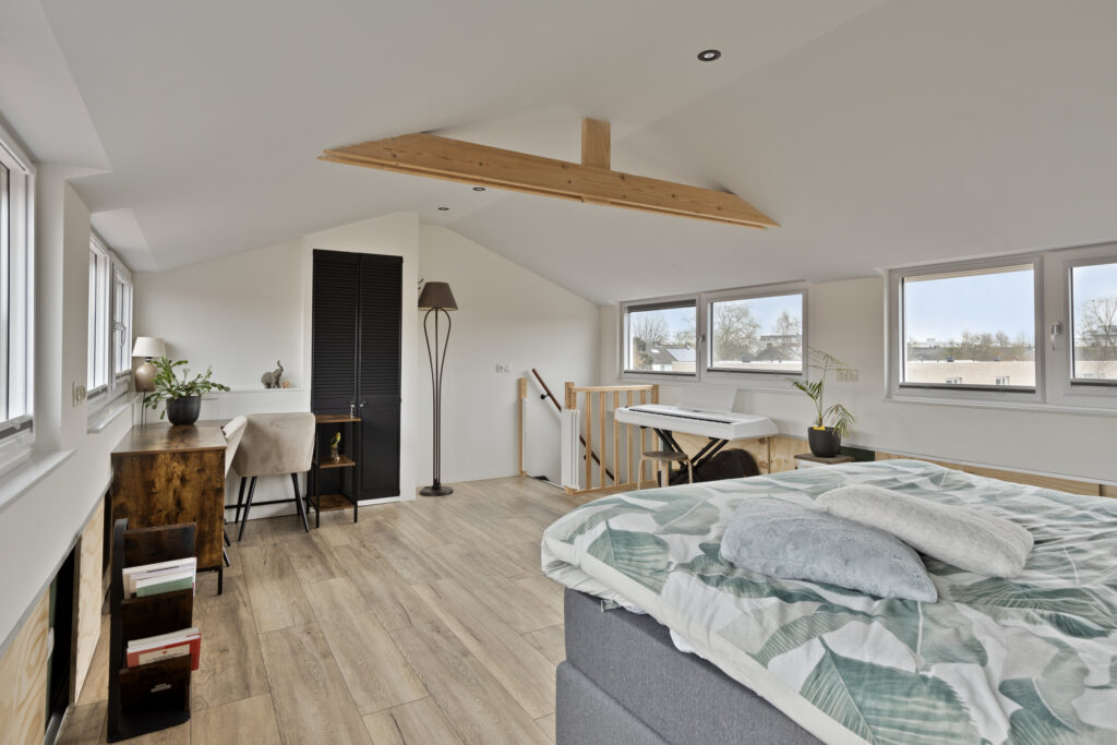 In 2023 is een volwaardige zolderopbouw gerealiseerd, wat resulteert in een ruime extra (slaap-) kamer. De kunststof kozijnen zijn voorzien van HR++ glas, horren, plissé raambekleding en elektrische rolluiken aan zowel de voor- als achterzijde.