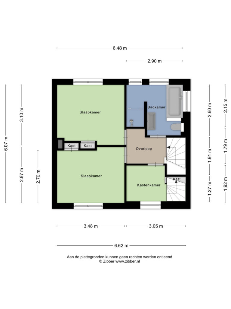 De overloop geeft toegang tot twee ruime slaapkamers, een kastenkamer en de badkamer.