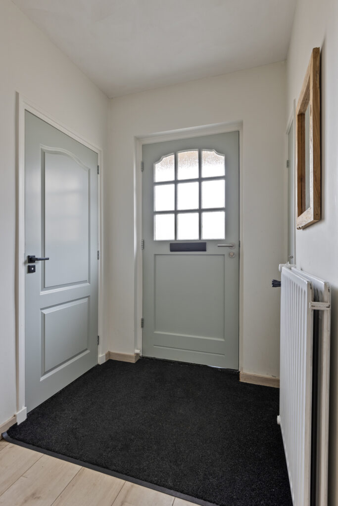 Via de overdekte entree kom je binnen in de hal met vernieuwde meterkast, trapopgang en een nette toiletruimte met wandcloset en fonteintje.