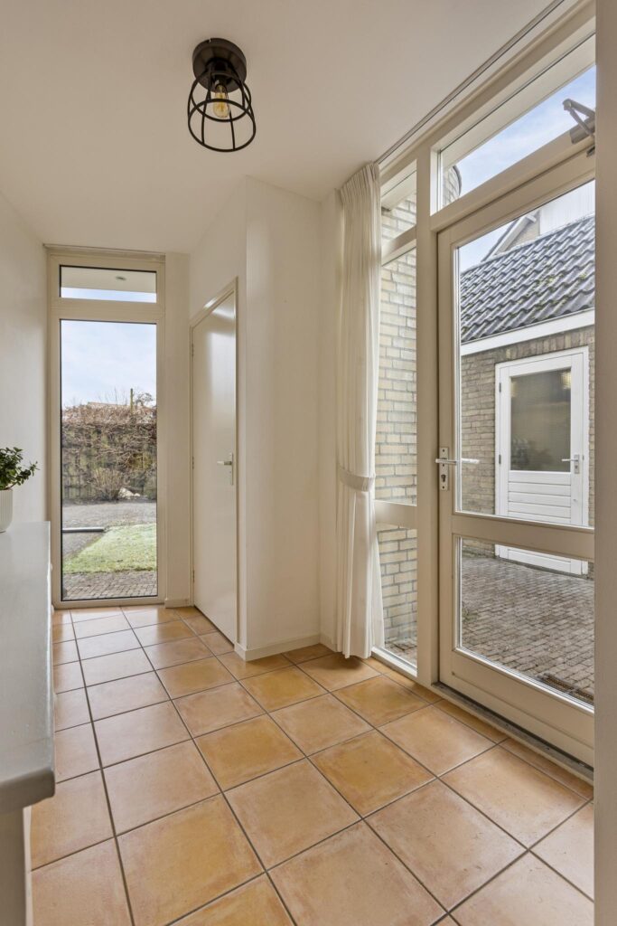 Entree/hal met vernieuwde meterkast, garderoberuimte, een voorraadkast onder de trap en een betegelde toiletruimte met hangend toilet en fonteintje. Vanuit de hal is eveneens de achtertuin bereikbaar. Toegang tot de aan de voorzijde van de woning gelegen woonkamer welke is voorzien van een mooie houten vloer, diverse spots en een sfeervolle elektrische haard. Grote raampartijen zorgen voor voldoende daglicht. Wanden en plafond zijn afgewerkt in lichte kleuren. De keuken is centraal in de woning gelegen en is voorzien van een tegelvloer met vloerverwarming. De keuken is voorzien van een keukenblok in U-vormige opstelling dat is voorzien van een koelkast, combimagnetron, vaatwasser, vijfpits gaskookplaat, oven, afzuigkap en Quooker. Volop opbergruimte in de vele onder- en bovenkastjes. Verder is de keuken voorzien van diverse inbouwspots. Aansluitend aan de keuken een mooie eetkamer met een lichtstraat (met screen) en een grote schuifpui naar de achtertuin. De gehele begane grond is (m.u.v. de woonkamer) voorzien van een tegelvloer met vloerverwarming.