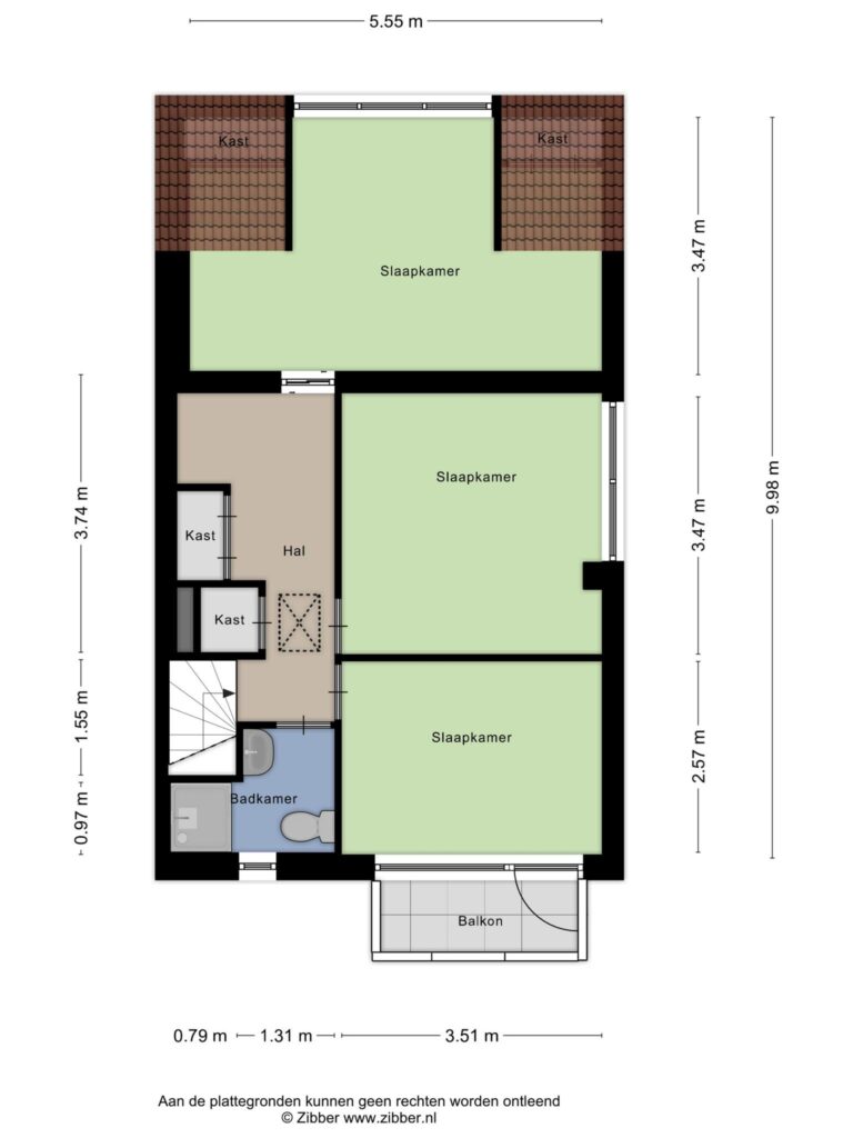 Op de eerste verdieping bevindt zich een overloop die toegang biedt tot drie ruime slaapkamers, allen voorzien van vloerbedekking en houten kozijnen en ramen met dubbel glas. De slaapkamer aan de voorzijde beschikt over een deur naar het balkon en handmatig bedienbare rolluiken. De ouderslaapkamer heeft eveneens een rolluik en een plafond afgewerkt met houten schroten. De ruime derde slaapkamer is gelegen aan de achterzijde en heeft een brede dakkapel vanwaar men een mooi zicht heeft over de achtertuin. Op de overloop bevindt zich een vaste kast en een handige kastenwand voor extra opbergruimte. De badkamer is uitgerust met een douchecabine, toilet en wastafel.